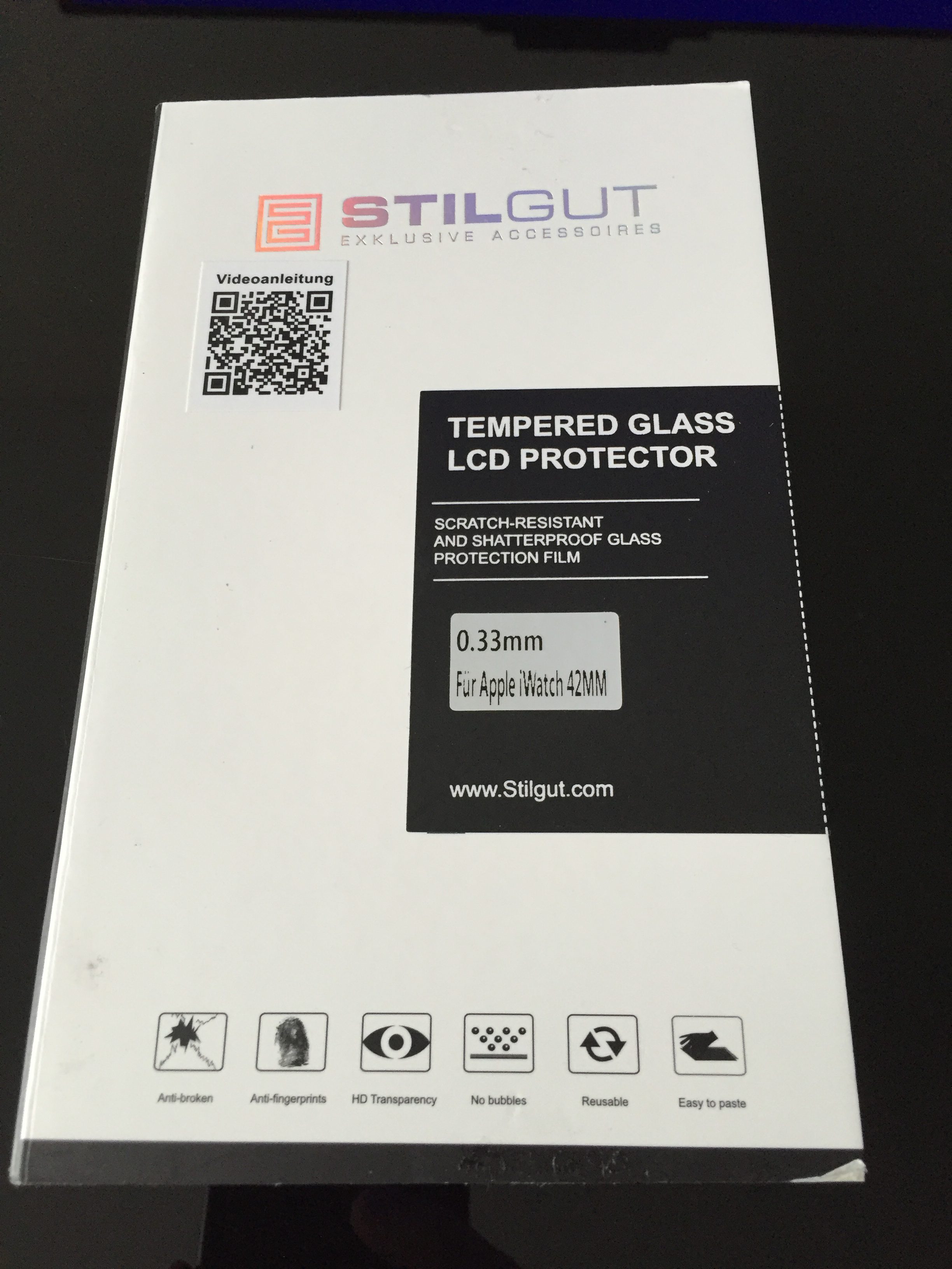 Le constat est que la protection en verre trempé à plusieurs défauts assez gênants. Premièrement elle ne recouvre pas assez le verre de l’Apple Watch. Deuxièmement le traitement du verre est mauvais, en effet le moindre slide ou appui laisse une trainée grasse (de doigts propres :P) sur la protection, j’ai pu faire l’expérience de la résistance contre ma volonté suite à un choc de la montre contre un évier et le résultat a été sans appel, le verre trempé à littéralement explosé sous forme de poussière alors que le choc a été fait sur l’angle du verre (non protégé). Le verre de l’Apple Watch a parfaitement résisté. Un comble pour une protection en verre trempé qui aurait du mieux résister que celui de la montre. Dernier point, le verre ne colle pas aux bords de la montre. Ce n’est donc pas un produit que je peux recommander. Au tarif 14,99€ de disponible sur Stilgut.fr