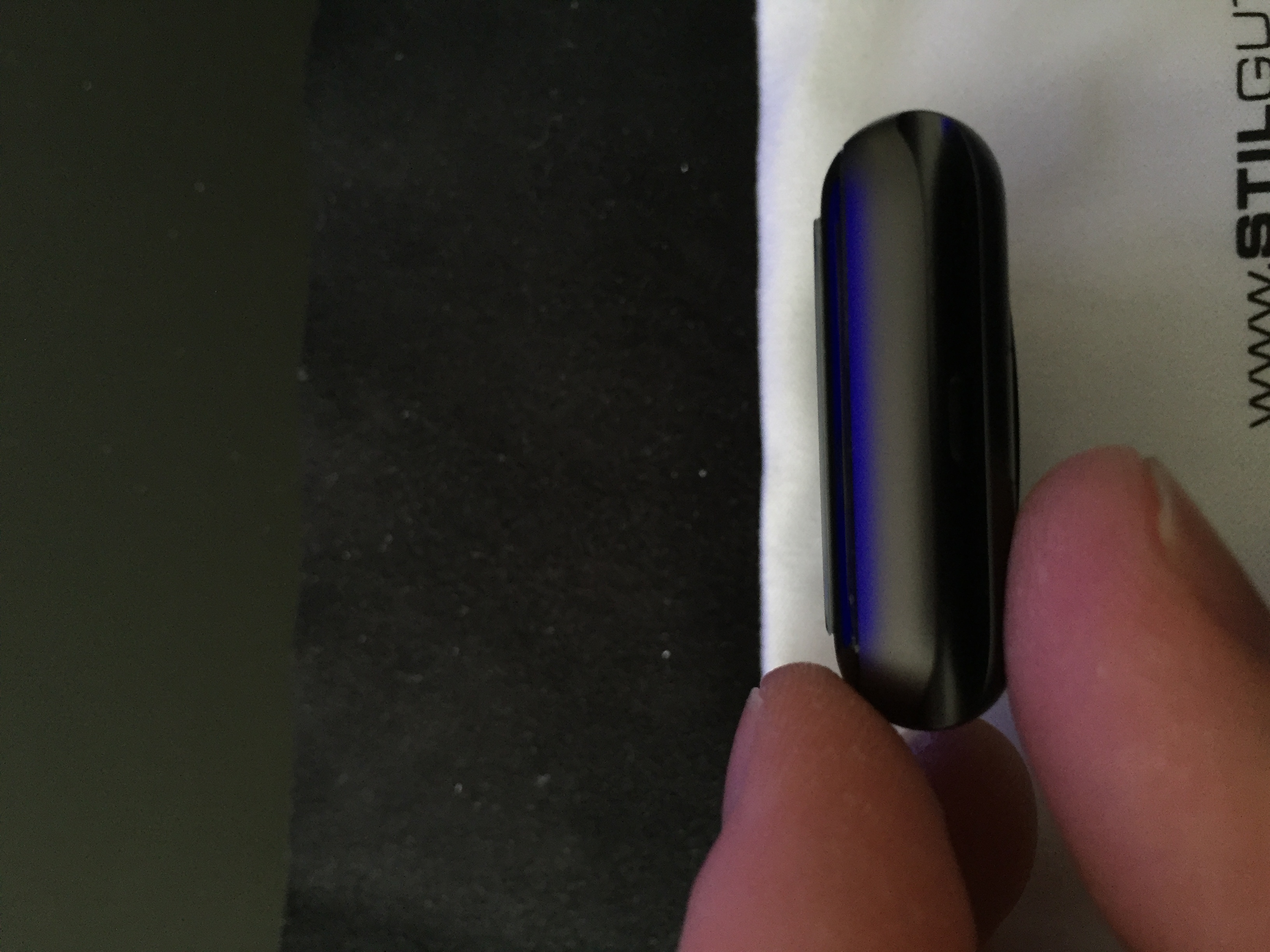 Comme vous pouvez le voir, le résultat n’est pas parfait sur les images et c’est assez étrange. À dire vrai j’ai pu tester à 2 reprises ces films de protection. La première fois je n’ai pas eu ce résultat en revanche le film n’adhérait pas complètement à la montre et se décollait sur les bords. Le service commercial de StilGut à était vraiment correct et m’a proposé de tester un autre jeu complet. Les films sont par lot de 3 sur une plaquette autocollante et j’ai pu constater que le premier lot de 3 donnait cet aspect après séchage alors que l’autre lot permettait d’avoir un résultat très propre et lisse. Le film après séchage se rigidifie et les bulles s’évaporent. J’en ai donc conclu qu’il s’agissait peut-être d’un lot défectueux ?! Par conséquent je pense qu’il s’agit vraiment d’un cas isolé surtout quand on regarde l’ensemble des commentaires et note sur le site de vente en ligne Amazon.fr. Le vrai plus de cette protection est le fait qu’elle recouvre même les bords de l’écran de la montre ce qui n’est pas le cas des verres trempé. Au tarif de 13,99€ disponible sur Amazon.fr